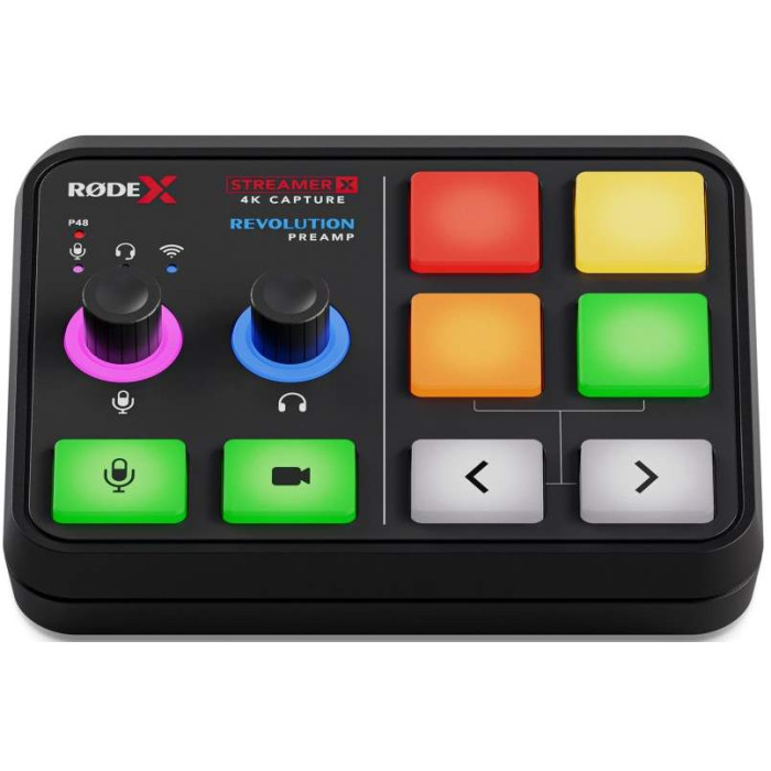 RODE STREAMERX - профессиональный аудио/видеоинтерфейс и панель управления, что объединены в одном компактном и простом в использовании устройстве. Захват видео 4K30 и передача 4K60 через HDMI. Студийный предусилитель Revolution Preamp™.
